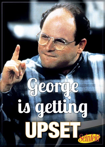 3 1/2″ x 2 1/2″ magnet of George Costanza’s famous quote “George Is Getting UPSET.”