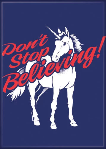3 1/2″ x 2 1/2″ magnet of Unicorn Don’t Stop Believing