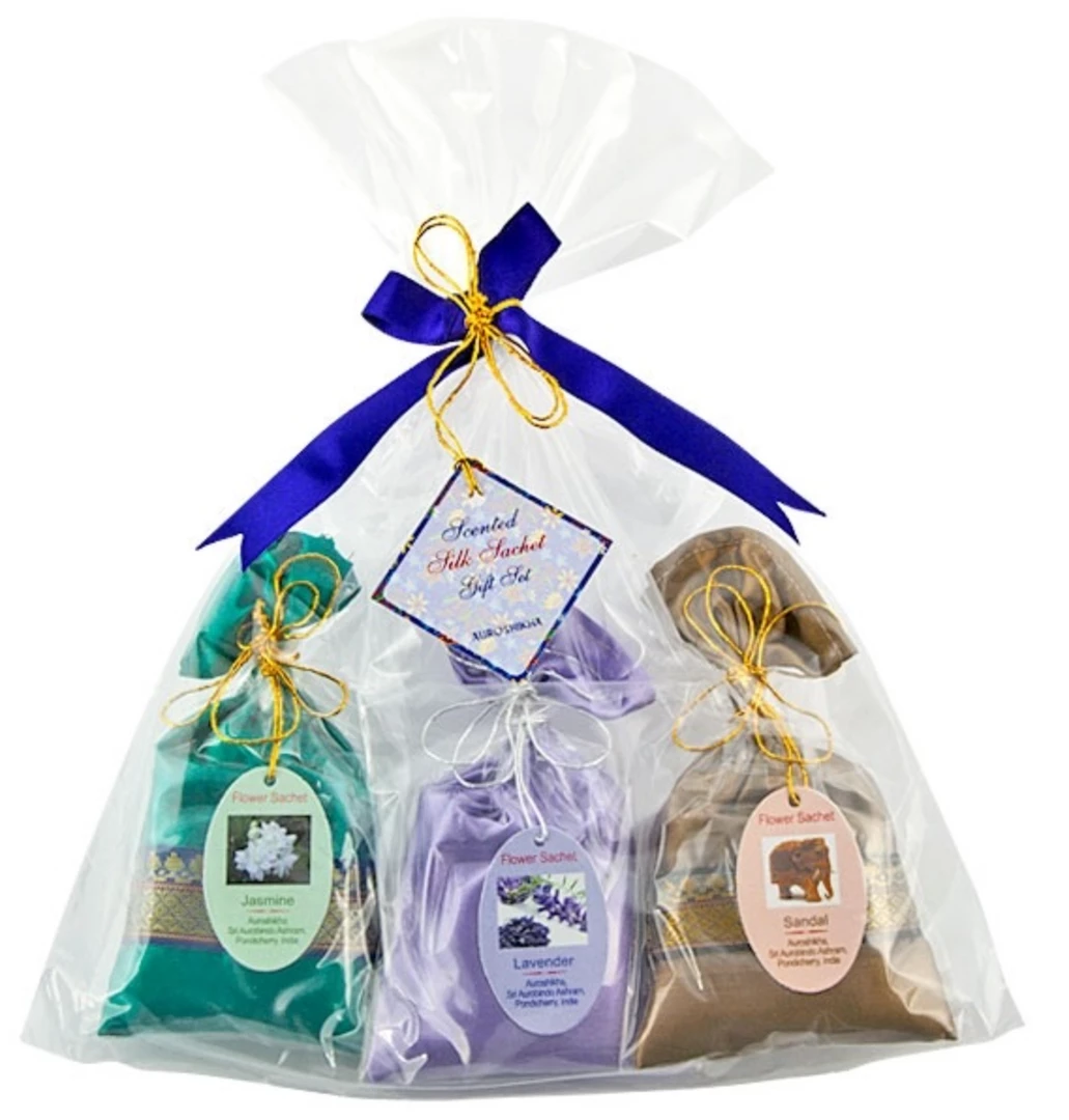 Sandal Powder scented filled in cloth/handmade paper sachets with attractive embroidery, lace work, screen printing. Ideal for use in wardrobes, suitcases and book shelves.