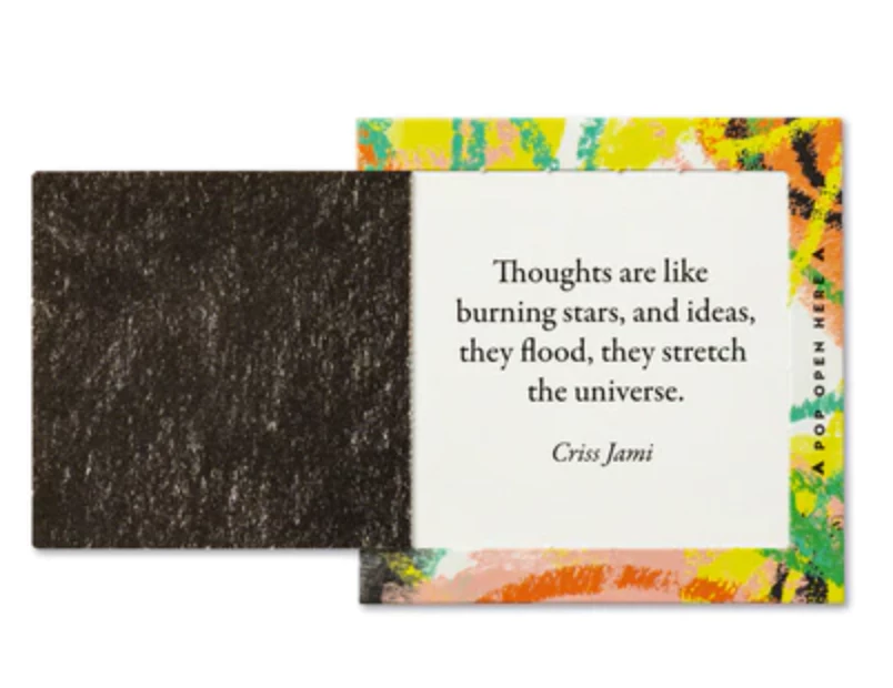 Little pop-open cards with messages inside were the first product we ever made. And they’ve been one of our most popular products ever since. Outside, you’ll find contemporary designs to brighten your spirit and catch your attention. Inside, you’ll find timeless messages of inspiration to capture your heart.