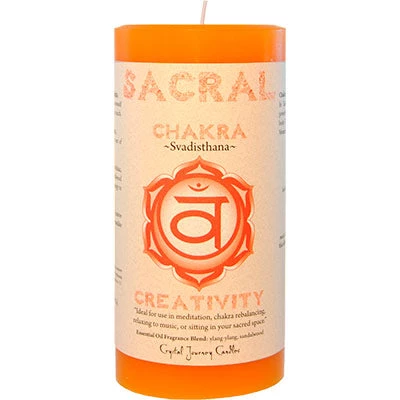 This vibrant orange candle contains a unique blend of ylang-ylang and sandalwood oils. The color orange is associated with the sacral or Svadisthana chakra and represents creativity, pleasure, emotions and procreation. Use its energy to increase, Intimacy, Sensuality, Confidence, and Sociability. Orange connects you to others through feelings. Chakra Candles are ideal for use in sacred spaces, for meditation, chakra rebalancing and to create a warm and relaxing environment.