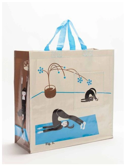 This fun yoga inspired tote has double duty Handles and a convenient shoulder length strap and is perfect for all shopping trips and toting almost anything around where it needs to go! Made with 95% post consumer recycled material.