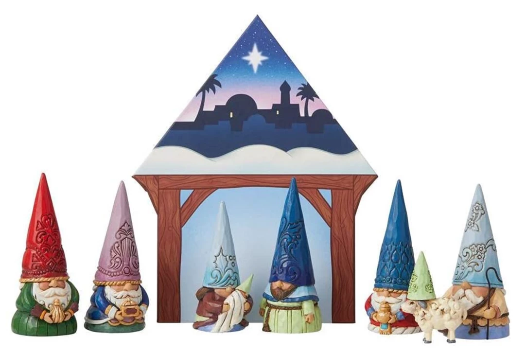 There’s no place like gnome for Christmas! Celebrate the season with this eight piece Jim Shore gnome Christmas pageant set celebrating the miracle of the season with three wise gnomes, shepherd, and gnomes playing the part of the Holy family.