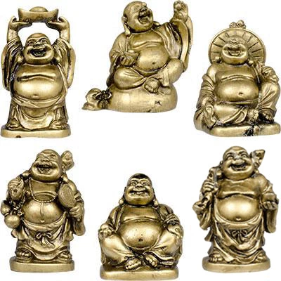 These happy feng shui Buddha figurines measure 2″ in height and are made of durable polyresin. Each Buddha symbolizes a different meaning, Safe Travels, Prosperity, Love, Spiritual Journey, Happy Home, and Long Life. Sold individually.