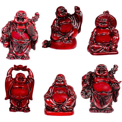 These happy feng shui Buddha figurines measure 2″ in height and are made of durable polyresin. Each Buddha symbolizes a different meaning, Safe Travels, Prosperity, Love, Spiritual Journey, Happy Home, and Long Life. Sold individually.