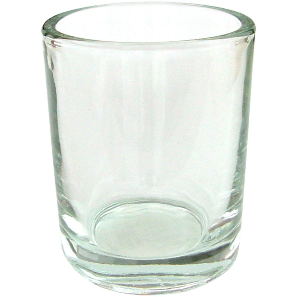 Clear glass votive holder, tapered shape matches very well all type of votive shapes and helps your candle to burn longer, keeping the melted wax on top instead of spilling to the bottom. Measures 2.5″ H and 2″ diameter.