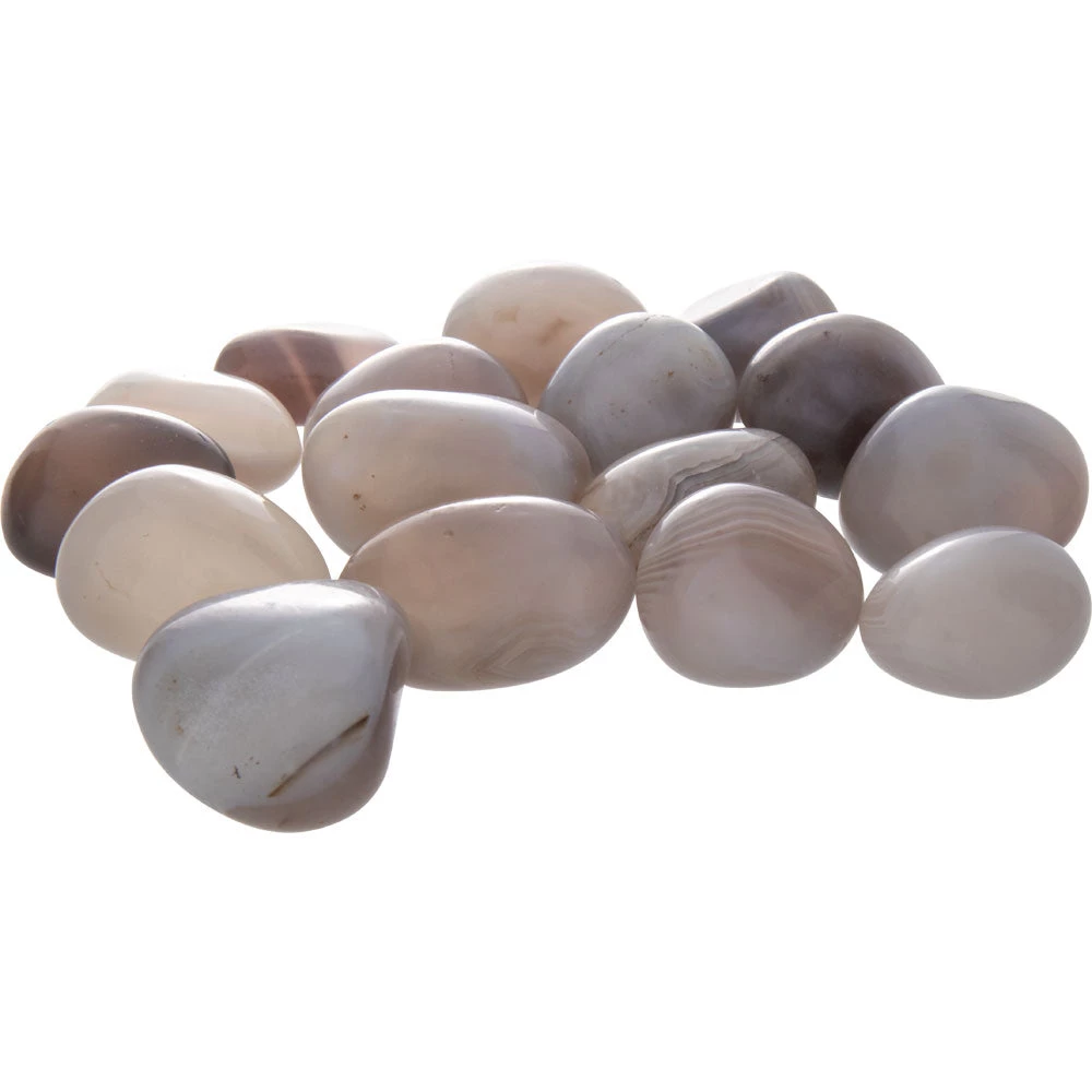 Tumbled stones are small, rounded, brightly polished pieces of rocks and minerals. They are made by placing rough rocks in a machine known as a rock tumbler, which tumbles them until their edges and surfaces are smooth and polished. As in nature, each stone has its own unique qualities in appearance.