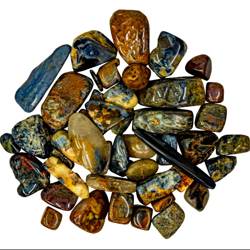 Tumbled stones are small, rounded, brightly polished pieces of rocks and minerals. They are made by placing rough rocks in a machine known as a rock tumbler, which tumbles them until their edges and surfaces are smooth and polished. As in nature, each stone has its own unique qualities in appearance.