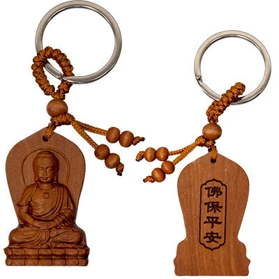 The peaceful image of the meditating Buddha is carved into this key chain made from jujube. Engraved with a powerful mantra for Buddha’s blessings of lifelong peace and safety, this beautiful blessing may be carried wherever you may travel. Sold individually, detailing shown on both sides of key chain.