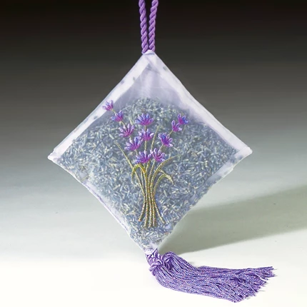 Hang in the car, on a doorknob, in the closet—anywhere that needs a fresh scent. 6″ Hanging Sachet with embroidery and tassel, scent lasts for years. Handcrafted in the Sonoma Valley in California by Sonoma Lavender.