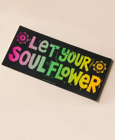 Embrace the positive vibes, free your spirit, and let your soul flower! Spread a mesage of positivity and soulfulness with this Soul Flower original sticker. Outdoor safe vinyl sticker. Made in the USA. 6.5 x 3 inches.