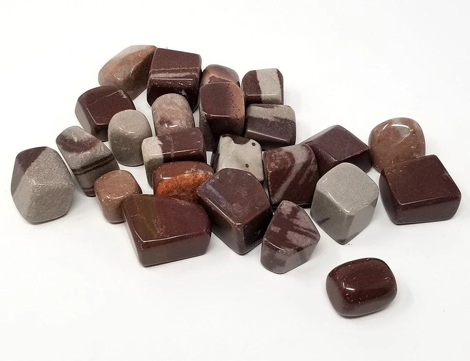 Tumbled stones are small, rounded, brightly polished pieces of rocks and minerals. They are made by placing rough rocks in a machine known as a rock tumbler, which tumbles them until their edges and surfaces are smooth and polished. As in nature, each stone has its own unique qualities in appearance.