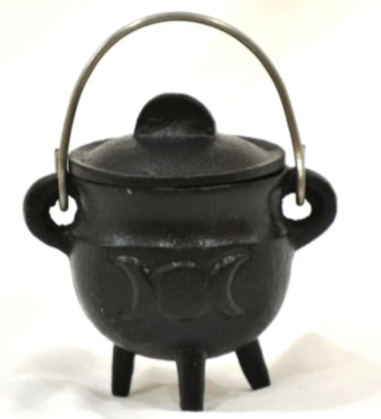 Triple Moon Cast Iron Cauldron w/lid 4.25″H 4.55″D