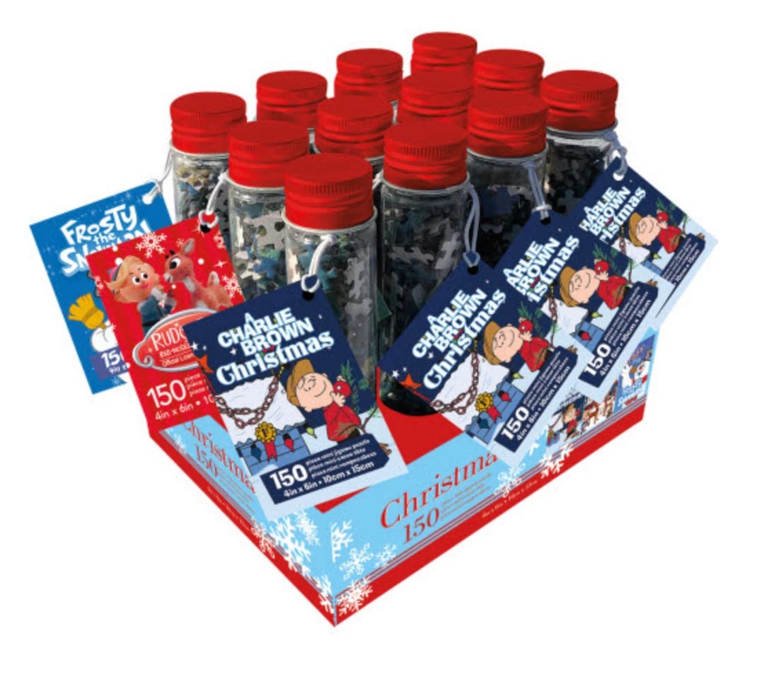 Great little stocking stuffer. A puzzle in a tube. Choose form 1 of 3 Christmas classic shows; Frosty the Snowman, Rudolph the Red-Nosed Reindeer or Charlie Brown Christmas.