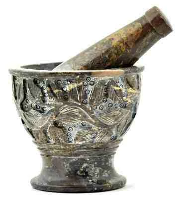This beautiful floral carved design soapstone Mortar & Pestle are wonderful for grinding and mixing herbs, spices, resins and woods.