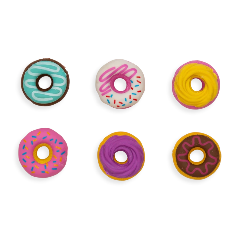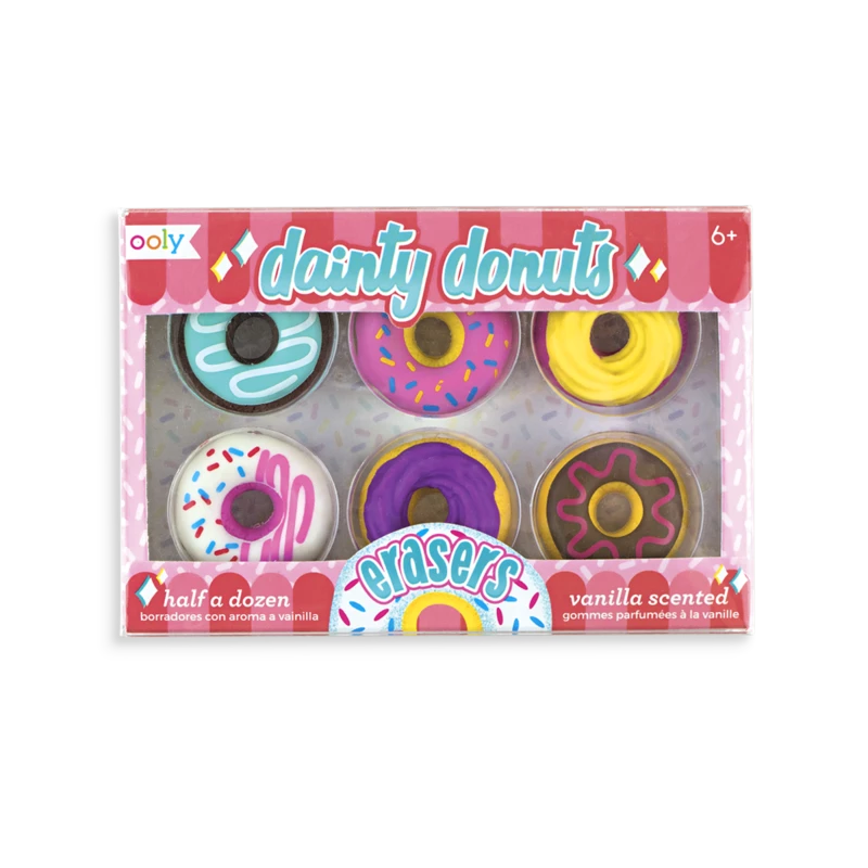 Erase in style with Dainty Donuts Pencil Erasers. This cute eraser set comes with half a dozen donut erasers that will make your pencil made mistakes disappear in a sweet looking way. Dainty Donuts are scented erasers too; they smell like sweet vanilla. This pencil eraser set is sure to make your day at school, home or work way sweeter too. Suitable for ages 6 and up.
