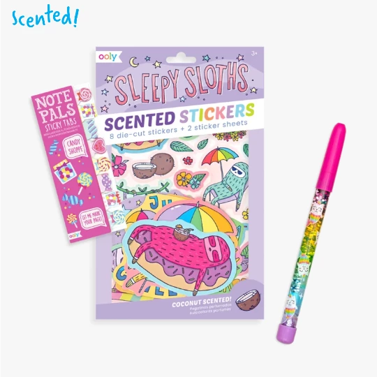 There’s no sweeter and cooler pack than the Sweets & Sloths Happy Pack! You can cast magic with your writing using the Rainbow Glitter Wand Pen before you add some coconut scented Sleepy Sloths Scented Scratch Stickers. Keep cool under pressure as you keep your work all together with the Candy Shoppe Note Pals Sticky Tabs.