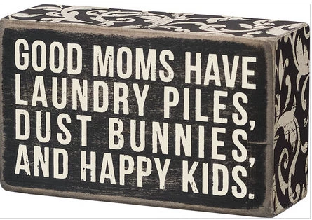 Primitives By Kathy Box Signs Good Moms Have Lanudry Piles, Dust Bunnies, And Happy Kids Box Sign