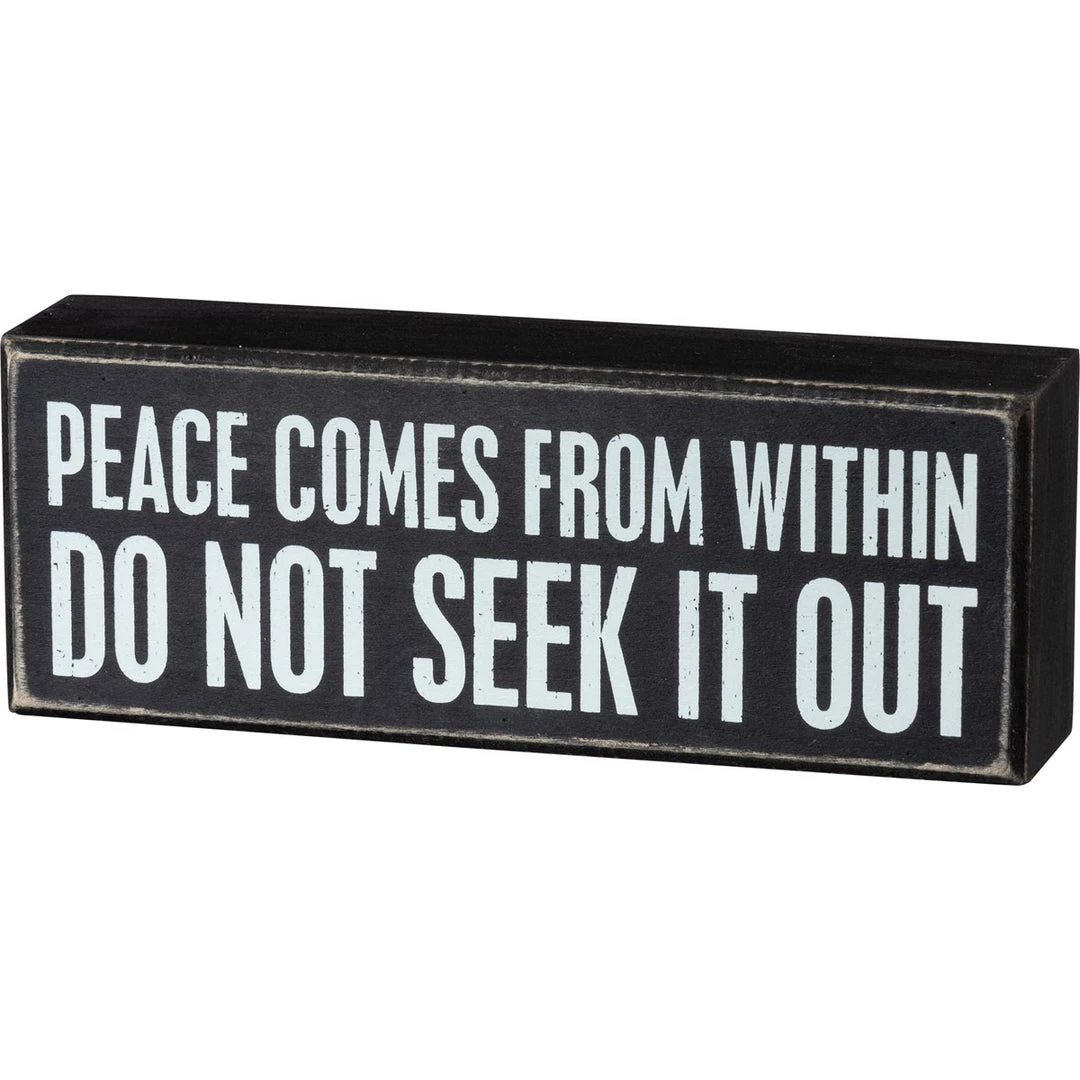 A classic box sign featuring a “Peace Comes From Within – Do Not Seek It Out” sentiment. Easy to hang or can free-stand alone. 8″ x 3″ x 1.75″