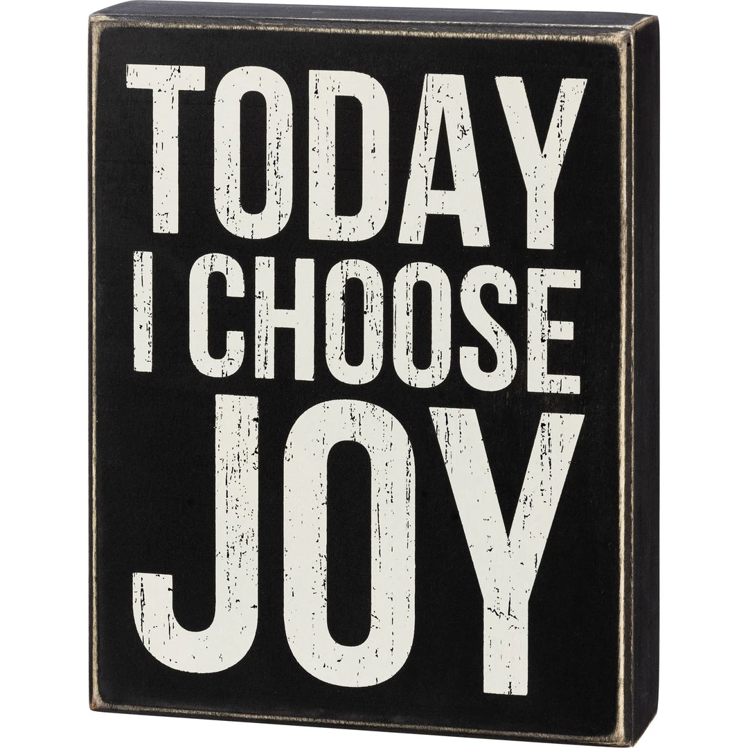 A classic black and white wooden box sign featuring a distressed “Today I Choose Joy” sentiment. Easy to hang or can free-stand alone.