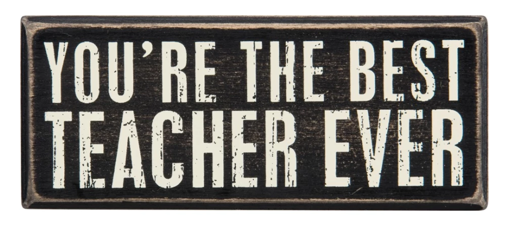 A classic black and white wooden box sign featuring a distressed “You’re The Best Teacher Ever” sentiment. Easy to hang or can free-stand alone.