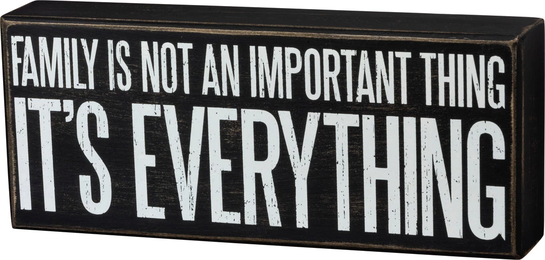 Classic and timeless, a black and white wooden box sign featuring a distressed “Family Is Not An Important Thing – It’s Everything” sentiment. Easy to hang or can free-stand alone. 10″ x 4″ x 1.75″
