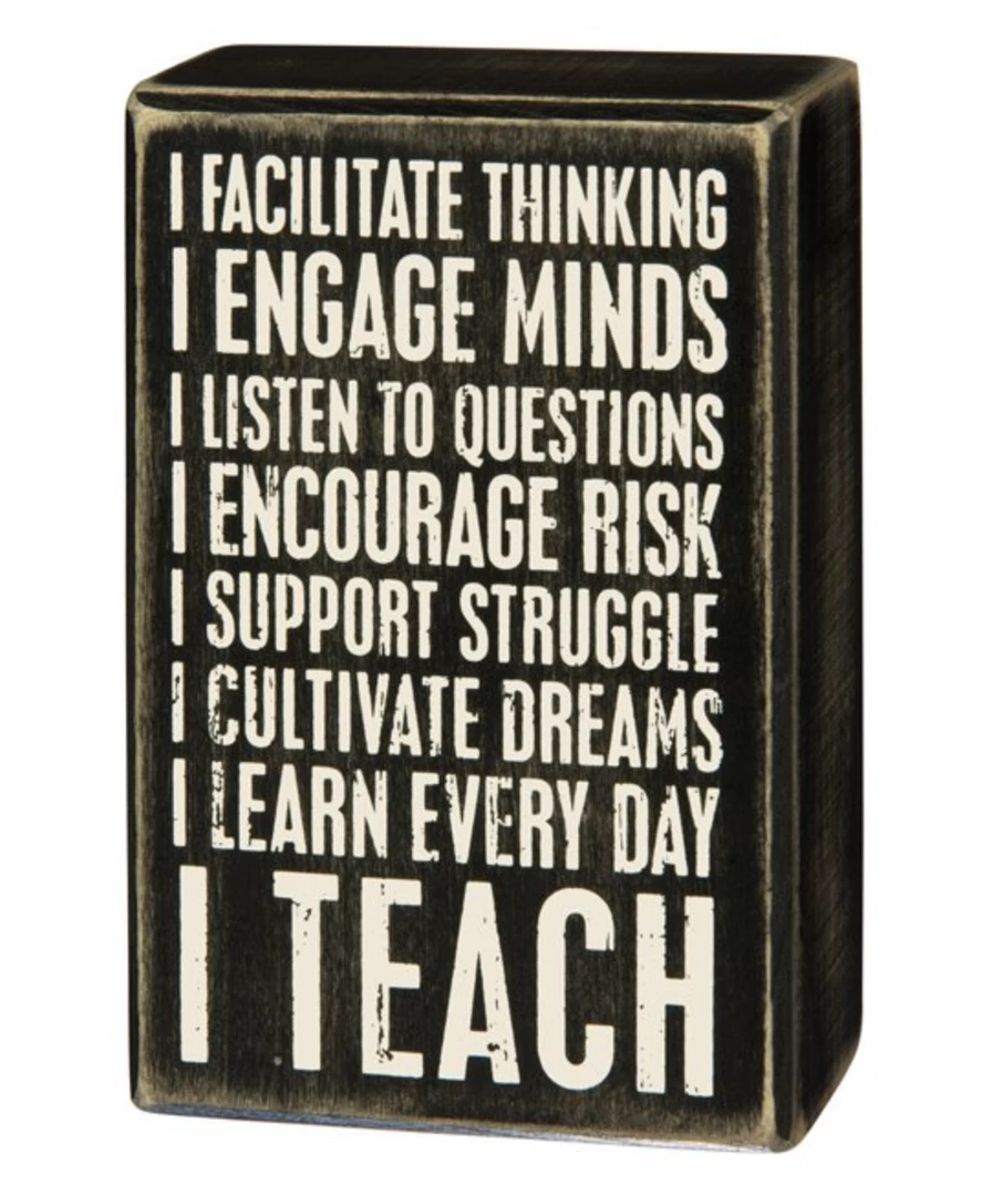 - Full graphic text: I facilitate thinking. I engage minds. I listen to questions. I encourage risk. Isupport struggle. I cultivate dreams. I learn every day. I teach.