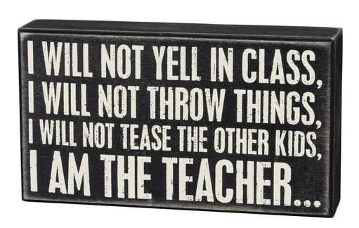 Primitives By Kathy I Will Not Yell In Class, I Will Not Throw Things, I Will Not Tease The Other Kids, I Am The Teacher Box Sign