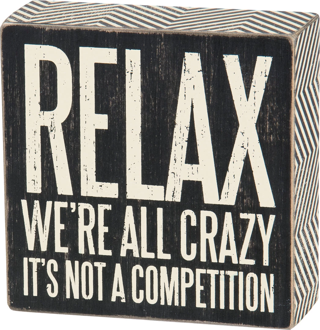 Primitives By Kathy Relax – We’re All Crazy It’s Not A Competition Box Sign