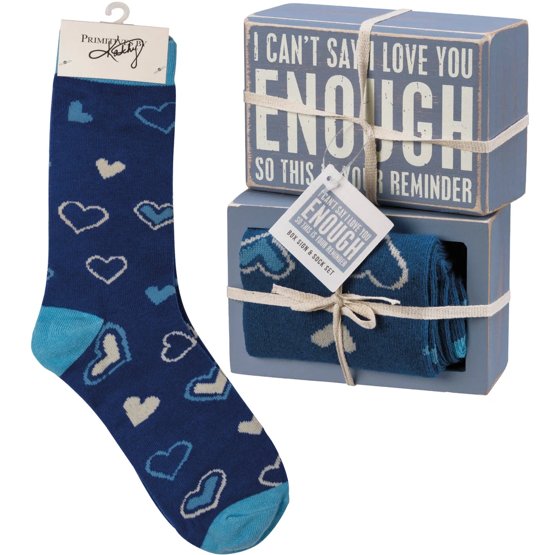 Primitives By Kathy Socks! Socks! Socks! Can’t Say I Love You Enough Socks & Box Sign Gift Set