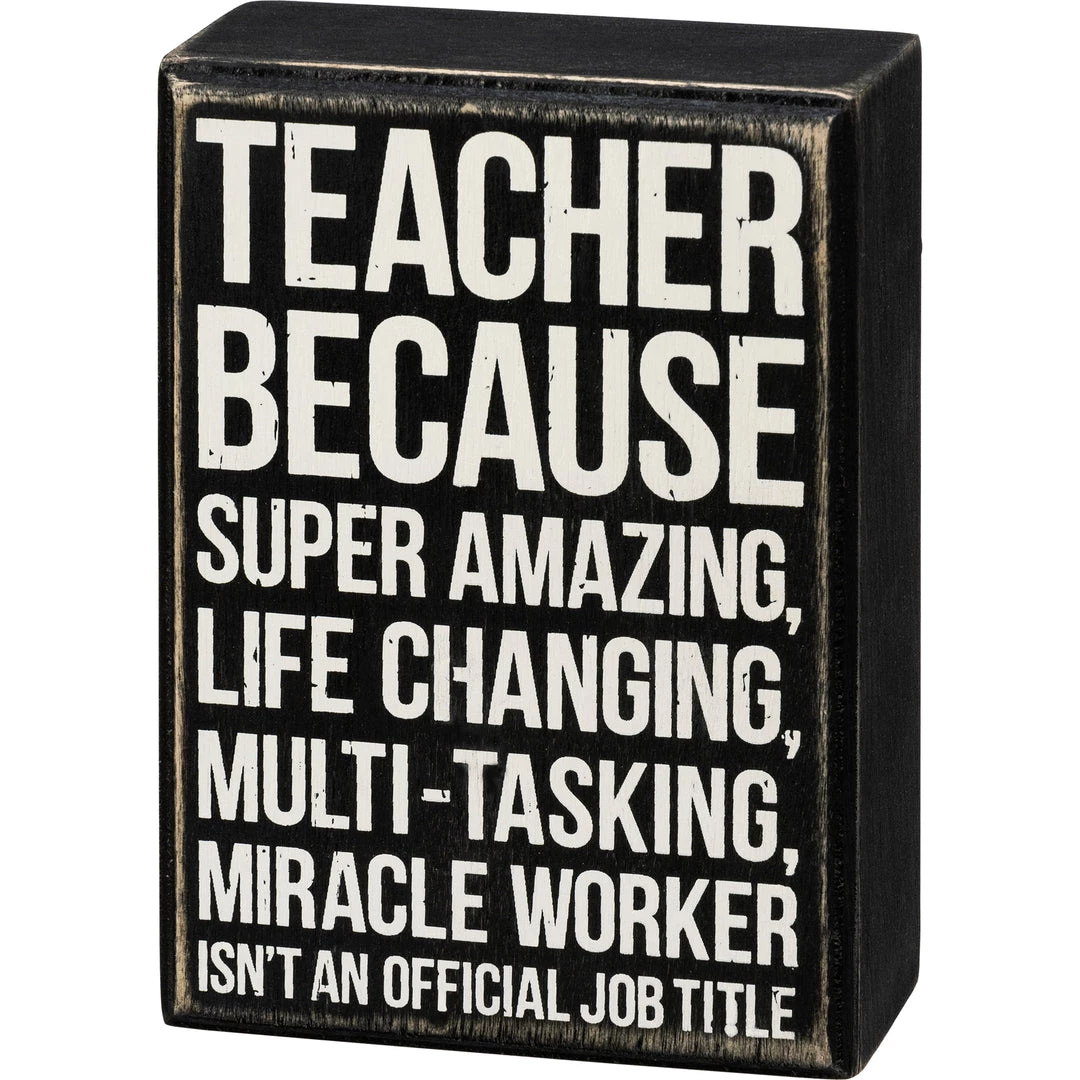 Primitives By Kathy Teacher – Because Super Amazing, Life Changing, Multi-Tasking, Miracle Worker Isn’t An Official Job Title Box Sign