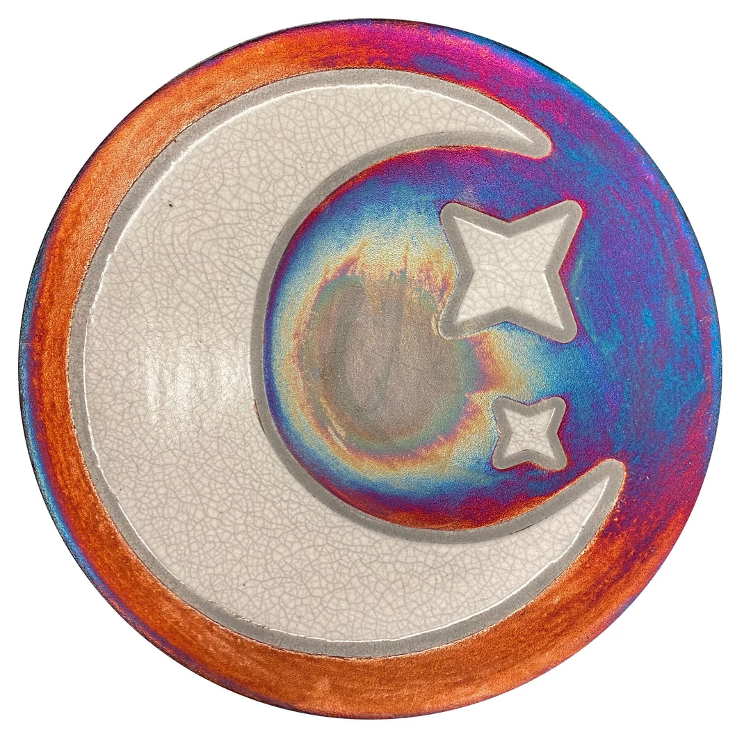 Raku Pottery is light sensitive and will fade if left in direct sunlight. These plates are not food-safe and should not be used for food. Each piece is unique in design and colors and may not look like the photos, please contact us if you have any questions before purchasing this gift.