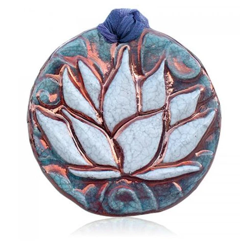 Raku Potteryworks New Arrivals! Lotus Medallion Ornament From Raku Pottery