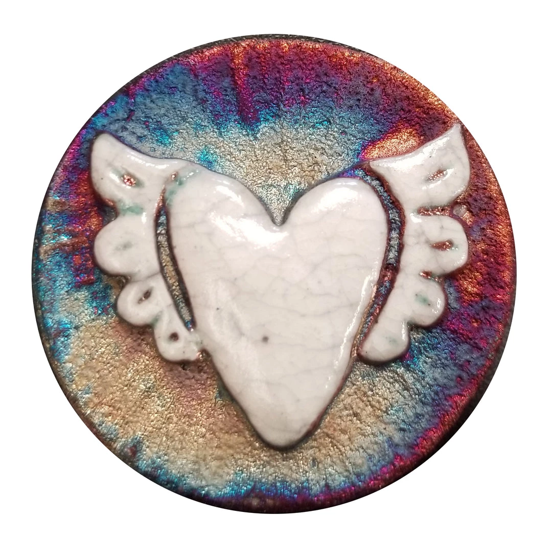 Raku Potteryworks Winged Heart Medallion Magnet From Raku Pottery