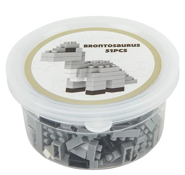 From Adventure Planet’s Dino Series, it’s a mini blocks Brontosaurus! 51 small colored blocks fit together to create a 3D, stand-up Brontosaurus, includes a container to store all the pieces. Fun gift for kids! Recommended for ages 3+.