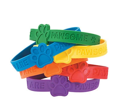 RI Novelty Paw Print Pawsome Sayings Rubber Bracelets Smiles & Surprises