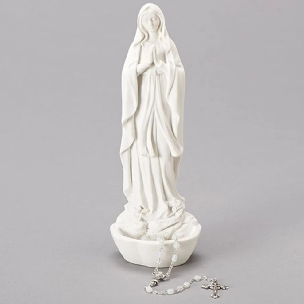 Keep your rosary beads in a special place with this beautiful rosary holder statue. Perfectly sized for a bedside table or desk.