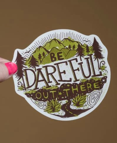 Be reminded with this nature sticker to take the risk and always be dareful out there. Explore the beauty of this world as your adventure awaits! One of our fun nature sticker options. Die Cut. Outdoor safe vinyl sticker. Made in the USA. 4.2 x 4 inches.