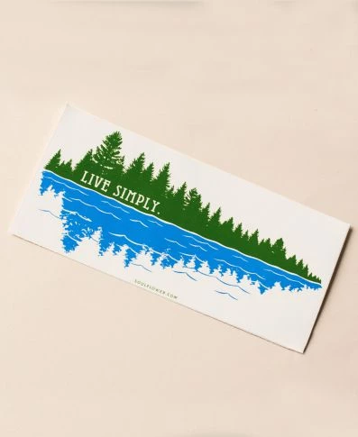A simple reminder to always be still, stay positive, and live simply. This live simply sticker will spread a simple message! Outdoor safe vinyl sticker. Made in the USA. 6.5 x 3 inches.