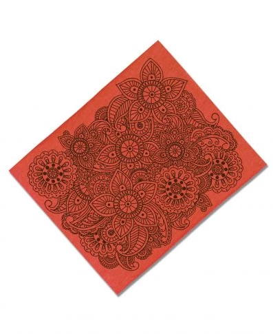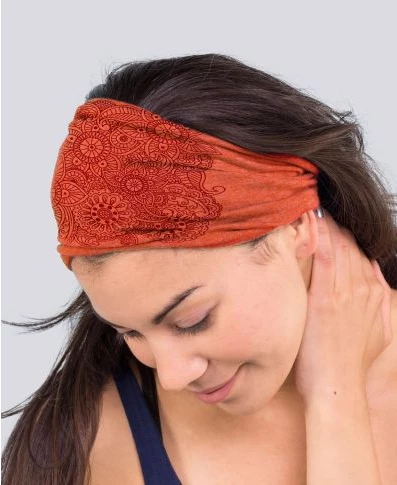 Find inspiration within this Mehndi Flowers Boho Headband. Features a divine mix of mehndi flower designs – the soft, organic fabric with raw seams can be worn as a head piece or as a face cover. 9 inches wide by 8 inches tall (laying flat) – fabric can stretch from 18 to 26 inches in circumference. Eco Flame.