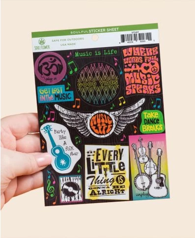 Music is truly life. Get lost in the love of music when you use this Music is Life Sticker Sheet. Sticks upon your stereo, notebook, guitar, water bottle, headphones, or laptop. Contains 10-20 peel-off rockin’ stickers that are safe for the outdoors. 5 x 7 inches.