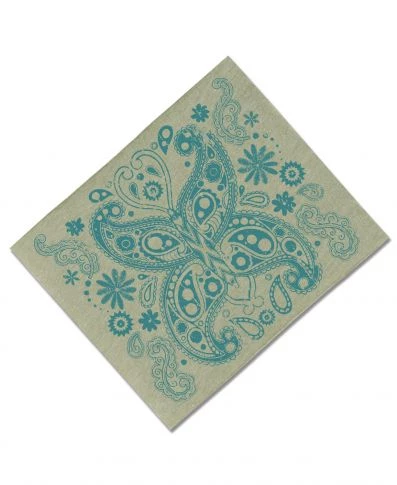 Our Paisley Butterfly Boho Headband features a butterfly made of cool retro paisleys and other groovy designs. Free your inner hippie with this cool hippie headband. Made in the USA. 50% organic cotton, 50% recycled plastic (from recycled beverage bottles). 9 inches wide by 8 inches tall (laying flat) – fabric can stretch from 18 to 26 inches in circumference. Eco Sage.