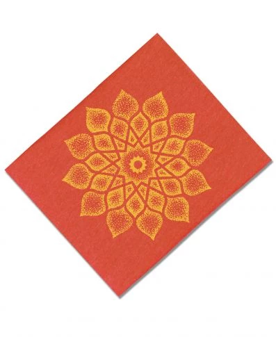 Brighten up the day and bring some happy vibes into your world. Whether you use it during yoga or throughout your day, you are sure to be reminded of the sunshine every time you wear this sun salutation headband! Made in the USA. 50% organic cotton, 50% recycled plastic (from recycled beverage bottles). Eco Flame. 8 inches wide.