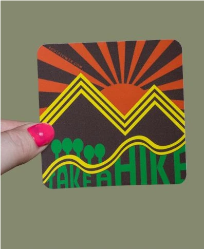 This little take a hike sticker will inspire adventures into the woods, mountains and walking trails everywhere. Wander your soul and breathe in the vibes of the world with this retro nature sticker. Go Take a Hike! Outdoor safe vinyl. Made in the USA. 3.5 x 3.5 rounded square.