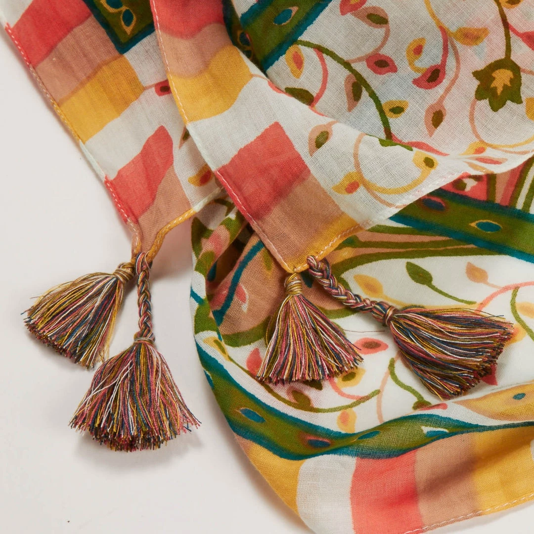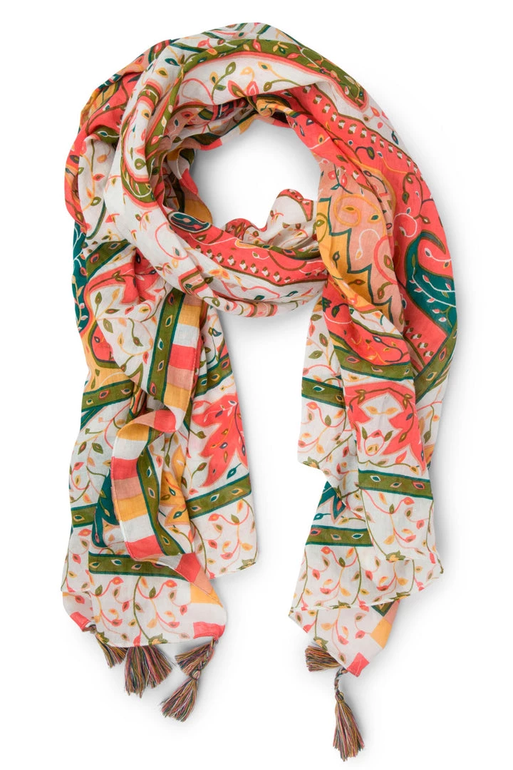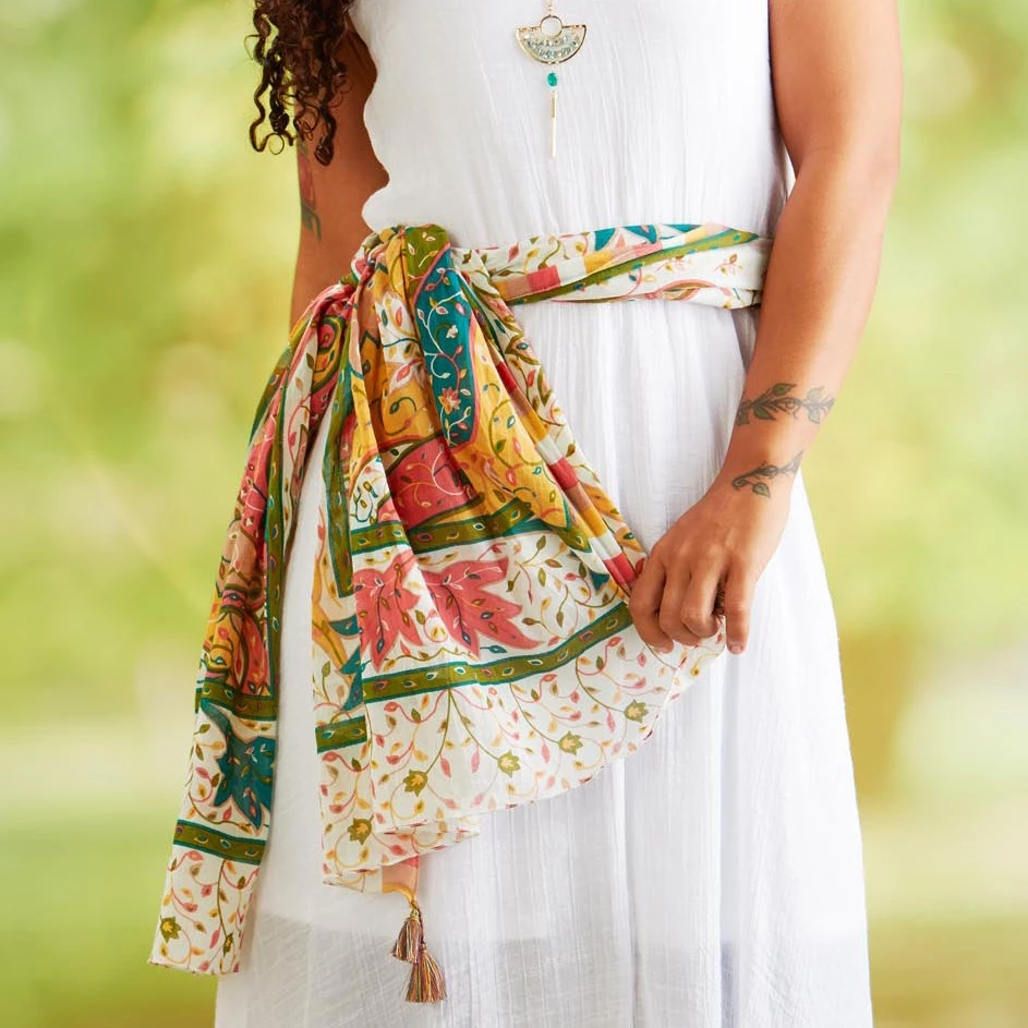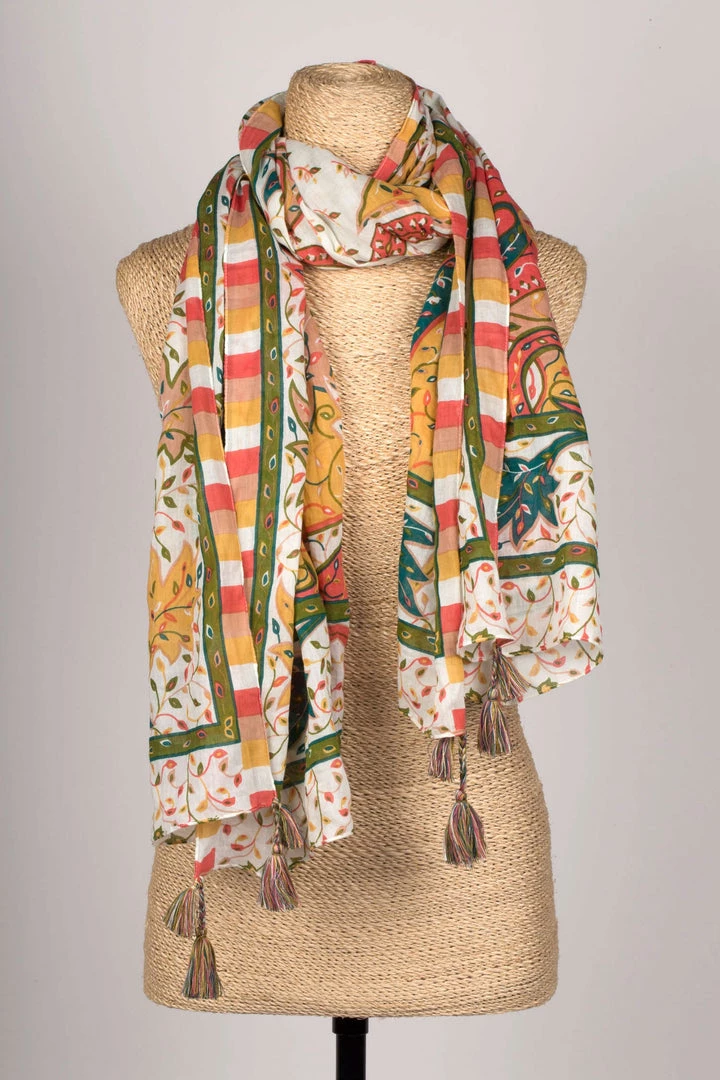 This floral paisley print scarf in warm spring shades comes from makers at Asha Handicrafts in India. Asha ensures that all artisans are paid fairly—and that men and women receive equal pay for equal work. Meaning “hope” in Sanskrit, Asha Handicrafts is an Indian fair trade organization that has been working to promote the social and economic development of artisans throughout India for more than 40 years. Asha works with more than 50 producer groups and more than 1,200 makers across India. A beautiful Global Fair Trade gift.