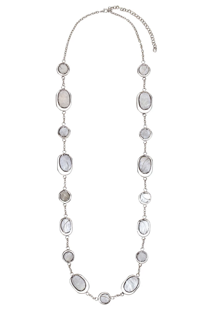 - Silver-plated brass chain with circle- and oval-shaped smoked capiz in silver-plated brass binding