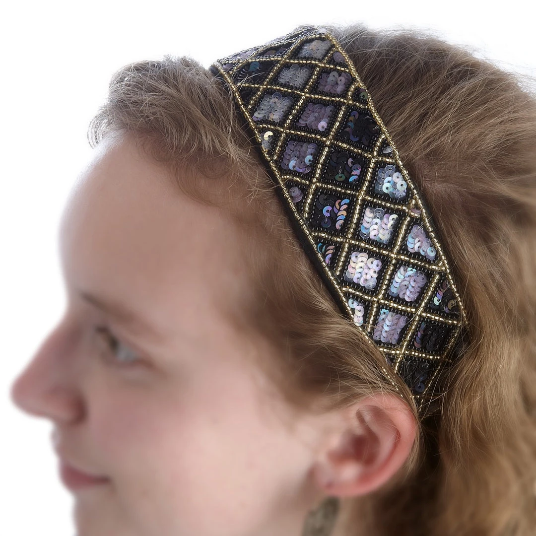 Bring out your inner flapper with this 1920s style headband. A geometric pattern of sequins and shiny gold beads will add the perfect bit of sparkle to your look and dress up any hairstyle. A beautiful Global Fair Trade gift.