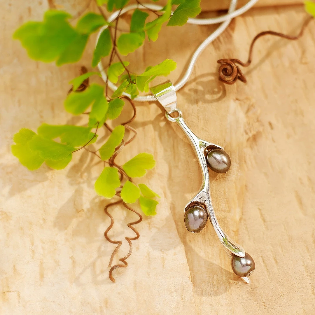 Handcrafted sterling silver and gray pearl necklace, from Nepali artisans in the Kathmandu Valley. The graceful sway of a willow branch reminds us of both elegance and resilience, of bending without breaking. A beautiful Global Fair Trade gift.