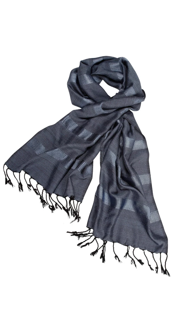What lies in that mysterious night? This dark scarf is a perfect pair for an elegant cocktail dress for a more formal evening out. The Fair Trade Egypt artisan group works to provide support for independently operating workshops throughout Egypt in the midst of political unrest. By helping makers market their craft, cultural traditions are preserved and upheld. A beautiful Global Fair Trade gift.