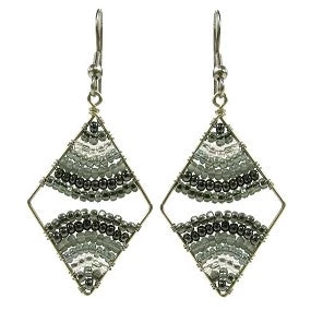 These diamond shaped frame earrings contain enchanting intricate curved rows of tiny colored glass beads. Delicate and elegant, they measure approximately 2 1/2″ L including ear wires, 1″ W. Handmade in Guatemala by the artisans at UPAVIM. A beautiful Global Fair Trade gift.